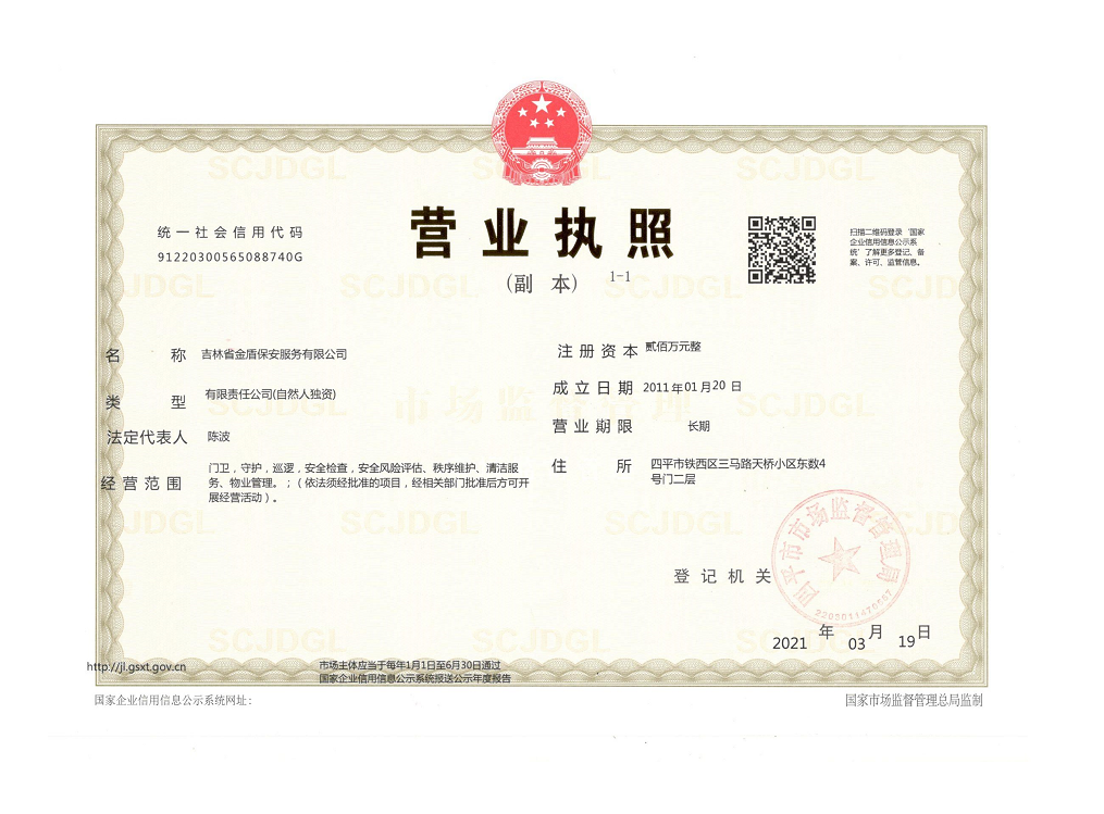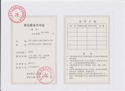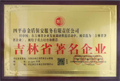公司簡(jiǎn)介   四平市金盾保安服務(wù)有限責(zé)任公司,是保安服務(wù)管理?xiàng)l例 實(shí)施后,經(jīng)吉林省公安廳、四平市公安局審核批準(zhǔn)、四平市工商行政管理局登記注冊(cè),具有獨(dú)立法人資格的保安服務(wù)有限公司,是集人力安全防范、技術(shù)安全防范、風(fēng)險(xiǎn)評(píng)估、安全培訓(xùn)管理于一體的正規(guī)化保安服務(wù)公司。公司自成立以來(lái),一直本著“科學(xué)管理、好的服務(wù)、爭(zhēng)創(chuàng)品牌”的服務(wù)宗旨,以好的管理水平、好的服務(wù)宗旨、好的工作業(yè)績(jī),為四平市各企、事業(yè)單位提供了完善的安全防范服務(wù),并得到了市煙草專(zhuān)賣(mài)局、中亞換熱器、北京威山機(jī)械、四平卷煙廠(chǎng)、石嶺鋼廠(chǎng)、東風(fēng)日產(chǎn)4S店、金山書(shū)社、絕緣材料廠(chǎng)等多家知名企業(yè)的支持與關(guān)照;并為“報(bào)喜鳥(niǎo)十周年店慶”、英雄廣場(chǎng)五...